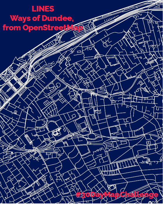 We're using this graphic in some of the materials for #sotmeu25 conference. If you know Dundee and can orientate yourself, Whitehall Crescent is most recognisable with it's curved street of shops. A rectangle with diagonal brace stands out, that's a park with all the trees mapped.