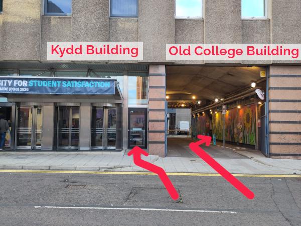 Beside the Kydd Building is a service road and side entrance into the Old College Building where the rest of the conference will take place.
