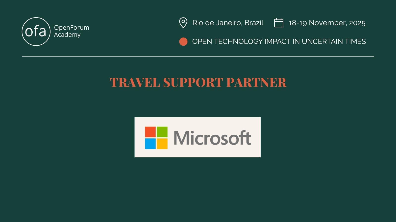 We would like to express gratitude to X and Y for making it possible for our speakers to join the OpenForum Academy (OFA) Symposium 2025 by providing travel support.