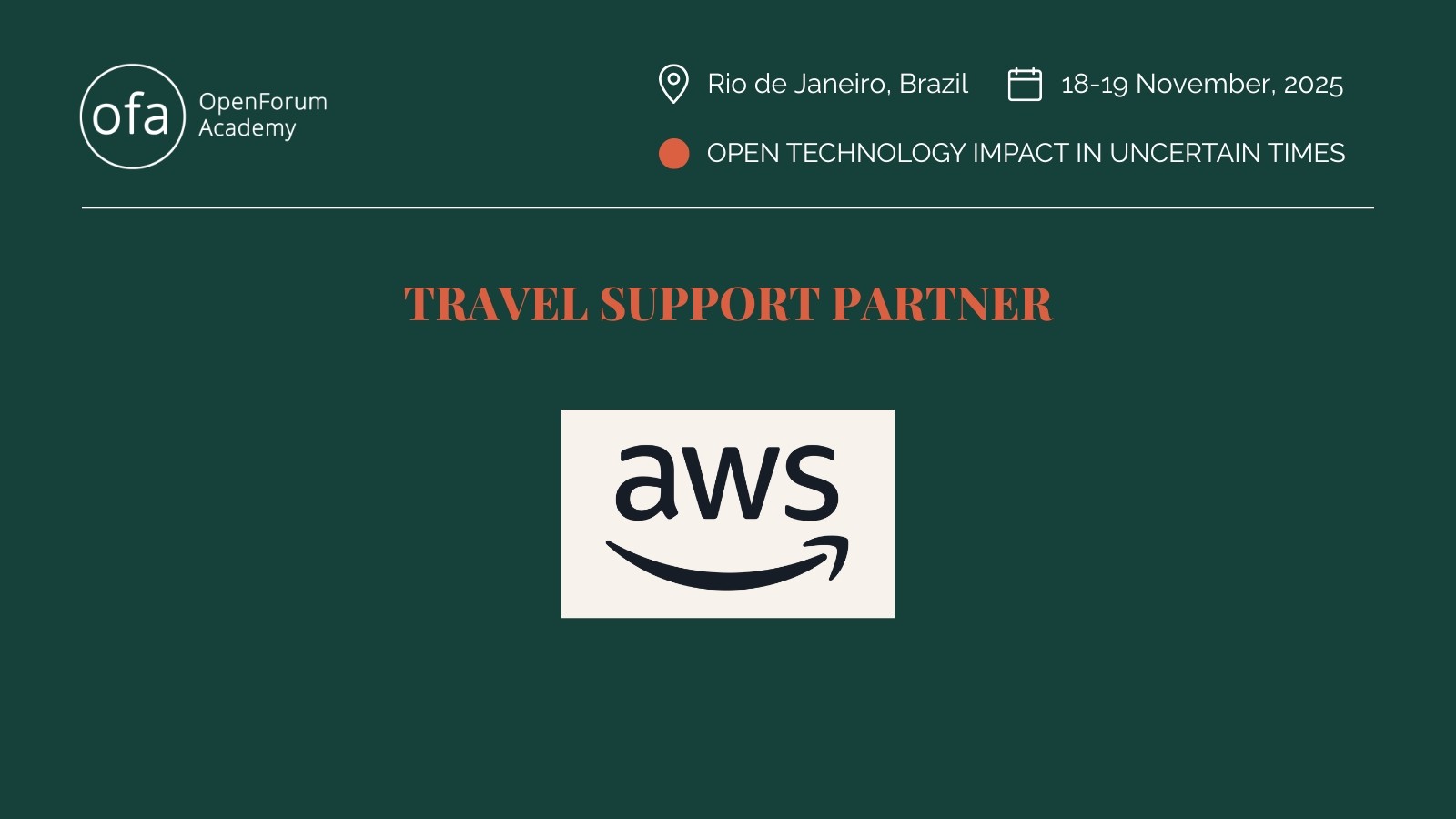 We would like to express gratitude to AWS for making it possible for our speakers to join the OpenForum Academy (OFA) Symposium 2025 by providing travel support.
