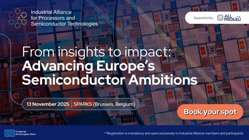 On 13 Nov 2025 in Brussels: From Insights to Impact: Advancing Europe’s Semiconductor Ambitions! 💡 Hosted by allpros.eu, the event unites industry, innovators & policymakers to shape Europe’s semiconductor future and the next phase of the #ChipsAct.